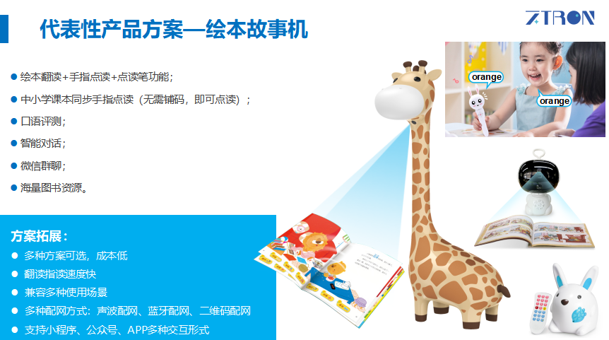 当然,随着早教行业快速发展,产品不断升级迭代,故事机和早教机的差别越来越小。目前,市面上很多故事机不只是讲故事,也向智能化多功能应用方向发展。不仅可以进行人机智能对话,还可以联网进行识别绘本和课本等丰富的功能。